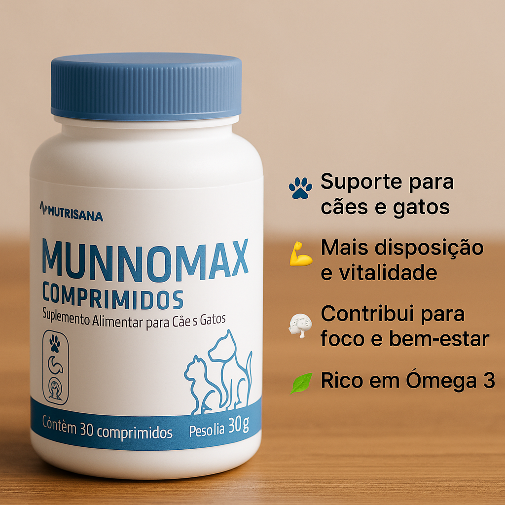 ✨ Criado para apoiar a rotina dos pets, o Munnomax auxilia no cuidado diário e no bem-estar de cães e gatos, sendo fácil de administrar e seguro para o uso contínuo.